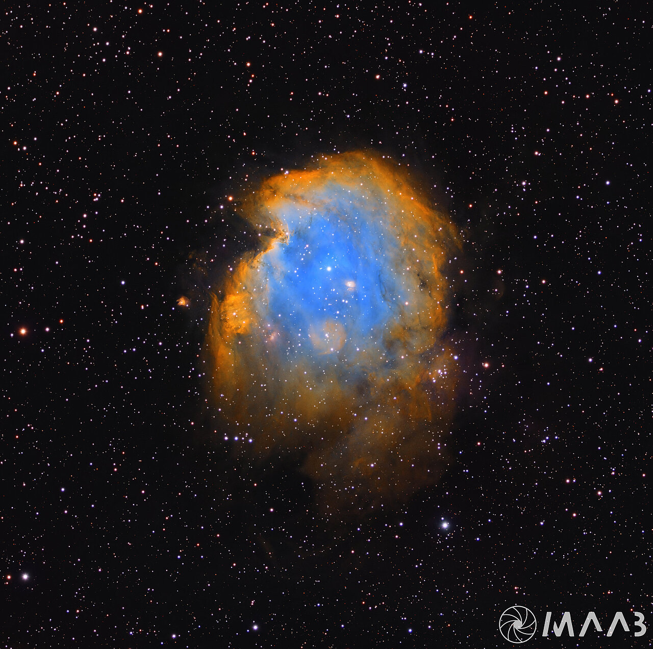 - Objekttyp: Emissionsnebel mit eingebettetem offenen Sternhaufen (NGC 2175)