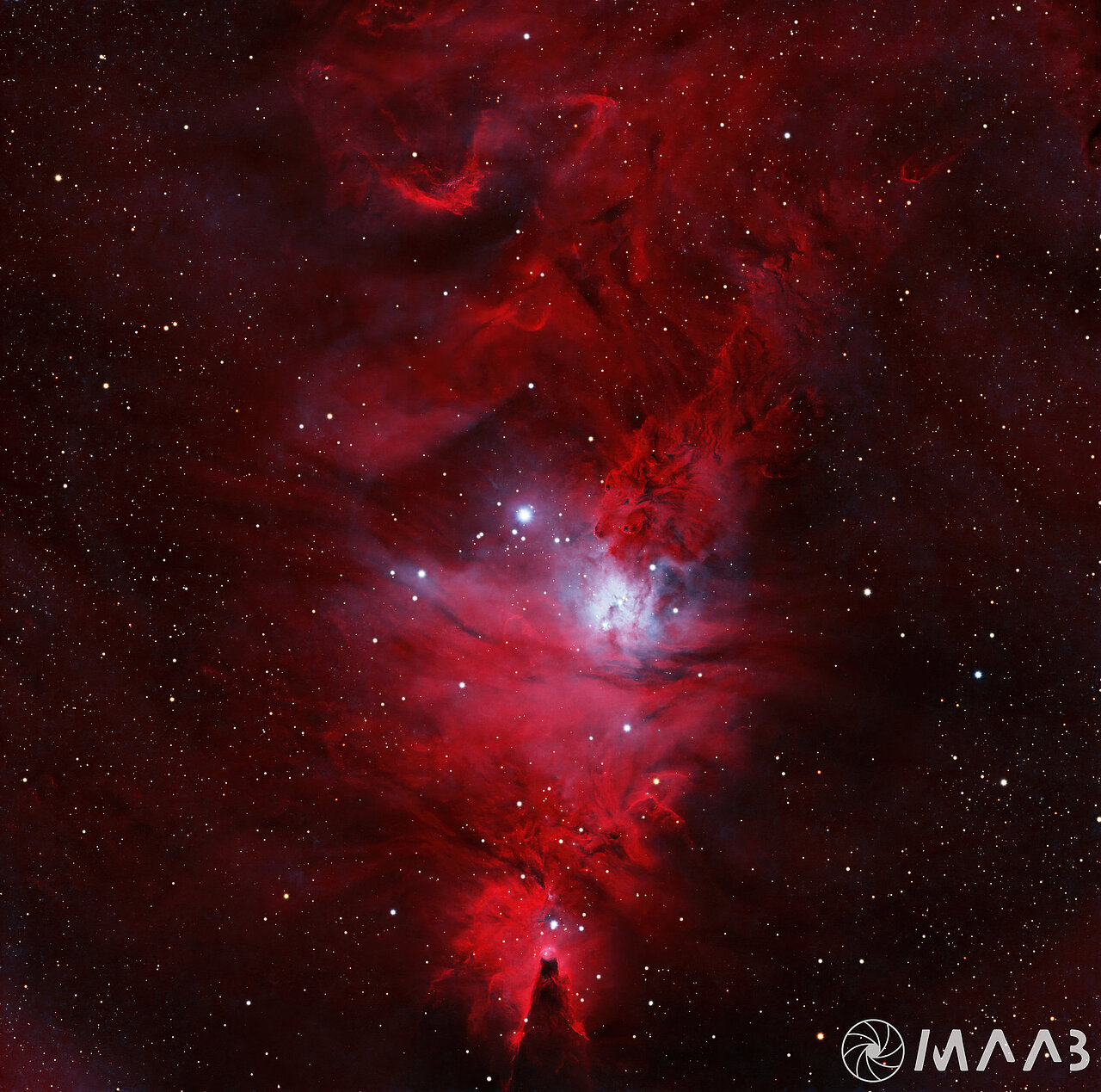 - Der Fuchsfellnebel (Fox Fur Nebula): Im oberen Bereich des Komplexes zeigen sich zerzauste, rötliche Strukturen, deren Aussehen an das Fell eines Fuchses erinnert.