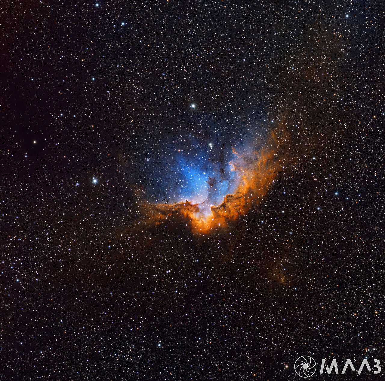 - Die Sterne aus dem RGB-Bild (mit ihren natürlichen Farben) werden extrahiert und dem SHO-Nebula-Bild hinzugefügt. Dies ergibt ein Endergebnis, das sowohl die tiefen Strukturen des Nebels als auch die natürlich leuchtenden Sternfarben zeigt.