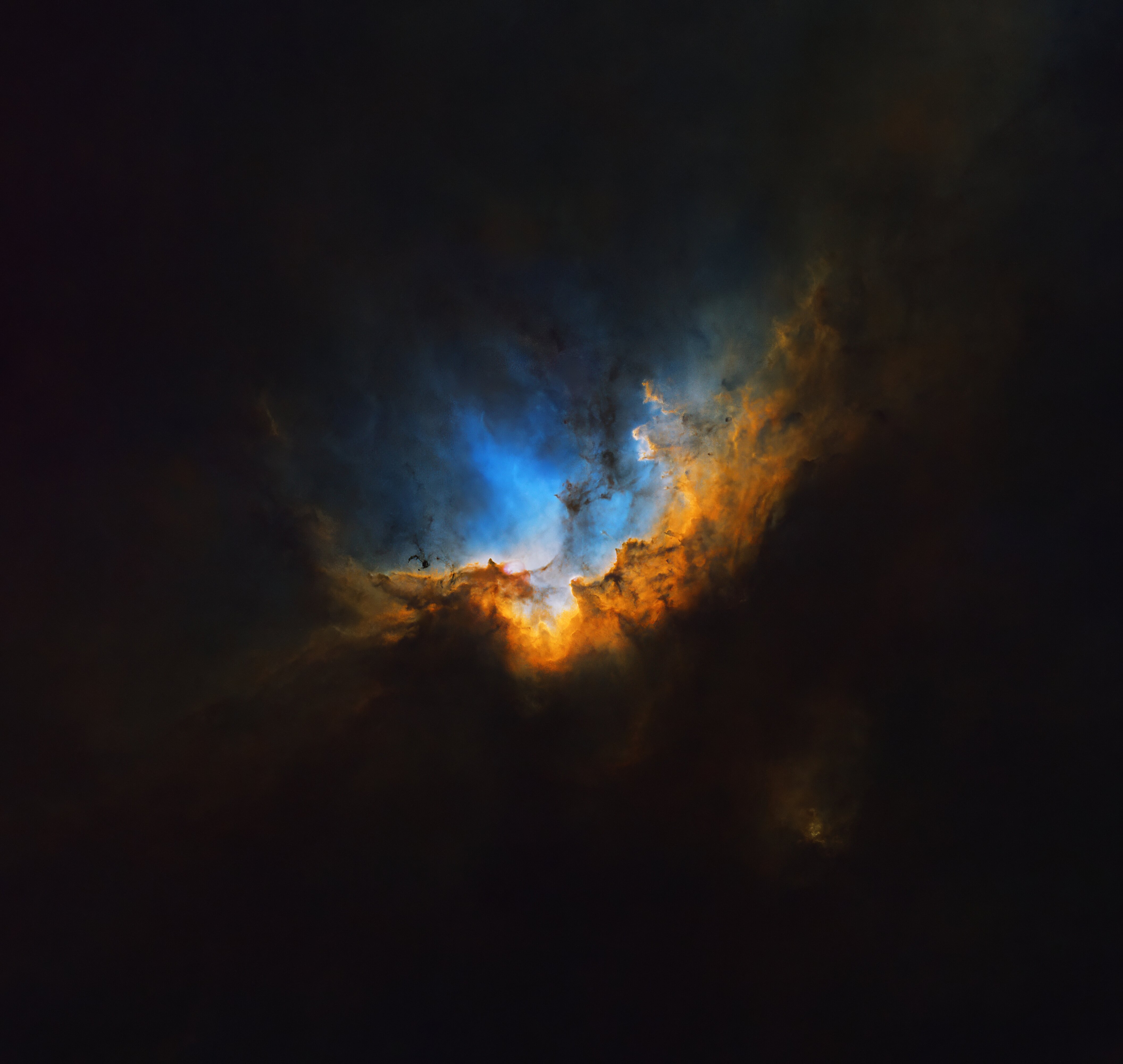 - Das SHO-Nebel-Bild wird bearbeitet, um die Struktur und Farbdetails herauszuarbeiten.